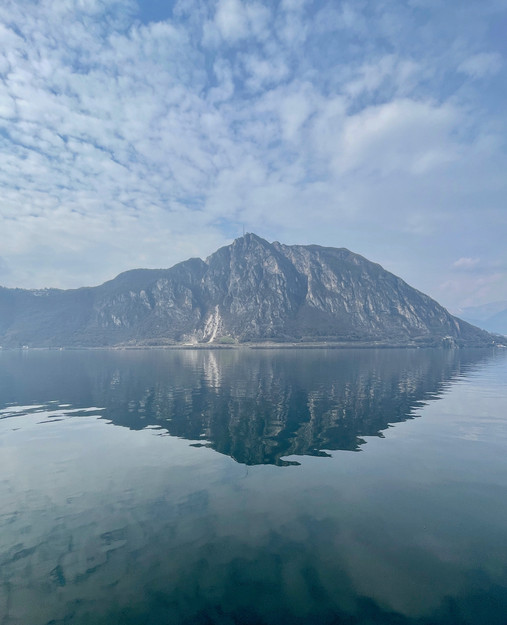 Nous arrivons alors sur le quai en dépassant encore le petit Oratorio San Pietro, le plus ancien édifice plus ou moins conservé de Campione. Nous atteignons alors les quais. Débarcadère, quelques bistrots et une magnifique vue sur le San Salvatore qui nous offre un reflet en parfaite symétrie sur le Ceresio.