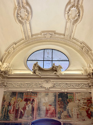 Première surprise agréable : l’église de Santa Maria dei Ghirli que j’ai trouvée magnifique, autant d’extérieur que d’intérieur. Lieu de pèlerinage, elle abrite d’importants cycles de fresques du XIVe au XVIIe siècles. Son nom vient du dialecte local « Ghirli » qui signifie martinets, en référence aux maîtres d’œuvre qui devaient émigrer pendant de longues périodes loin de chez eux. Le sanctuaire se situe au sud de Campione sur une terrasse accessible directement depuis les rives du lac par un monumental escalier double à quatre volées.