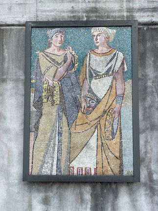Dans l’ancien domaine des fornaci ont été créés une plage, un bowling, un parking et un port de plaisance s’étendant sur 12’000 mètres carrés. Tout au long de la promenade qui finit dans un tunnel, on sent une volonté de rendre le lieu joli, même si ça part un peu dans tous les sens. Sculptures dorées issues de la mythologie grecque, mosaïques d’inspiration romaine, installations en boulons, jusqu’à ce tunnel sans issue…