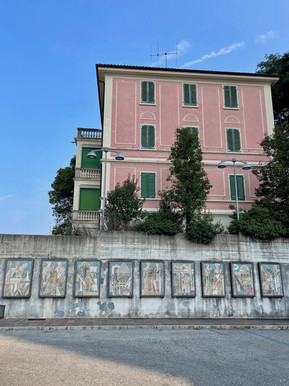 D’ici, nous longeons le flanc de montagne sur un sentier moyennement entretenu, pas spécialement bucolique mais qui évite la route principale. Surplombant d'abord la digue de Melide, nous arrivons après une demi-heure dans l’enclave italienne de Campione en dépassant une porte majestueuse et des fontaines en escaliers. L’Arc date des années 1930. Il symbolise l’entrée dans l’unique exclave italienne. L’histoire remonte à l’époque romaine où Campilonum est donné à Milan en 777. Malgré les vicissitudes politiques qui ont traversé la région dans les siècles suivants, Campione a conservé son identité italienne même lorsque les terres qui l’entouraient sont entrées dans la Confédération helvétique.