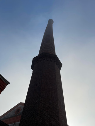 Ces figures géométriques, omniprésentes sur le site, constituent l’emblème de l’entreprise Crespi. Leur présence peut aujourd’hui interroger, mais elles ne présentent évidemment aucun lien avec l’étoile juive, à six branches d'ailleurs, dont l’usage stigmatisant n’apparaîtra que bien plus tard. Dominant les premiers bâtiments administratifs, une cheminée de brique haute de 70 mètres s’élève dans une symétrie parfaite. L’horloge, instrument clé de l’ère industrielle moderne, s’est arrêtée un jour, peu avant cinq heures. Le déclin de cette cathédrale du travail commence avec le départ de la famille Crespi dans les années 1930, puis s’accélère sous le régime fasciste. Plusieurs fois rachetée, la filature restera tant bien que mal en activité jusqu’en 2003.