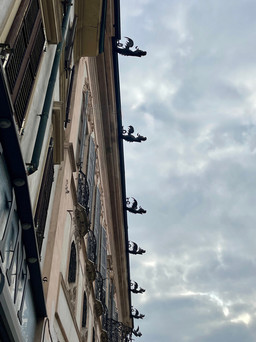 Vu qu’on a encore de la route et des bouchons en perspective, on ne va pas s’éterniser. Et puis, il fait froid. Néanmoins, cette ville m’a laissé une impression agréable. Peut-être qu’après l’âpreté de Pizzighettone nous éprouvons une forme de gratitude à croiser des gens vivants. Oscillant entre arabesques art nouveau, brique rouge lombarde et architecture rationaliste des années 30, le centre piéton m’enchante, nous longeons des palaces et des petites boutiques qui semblent encore tenir bon.