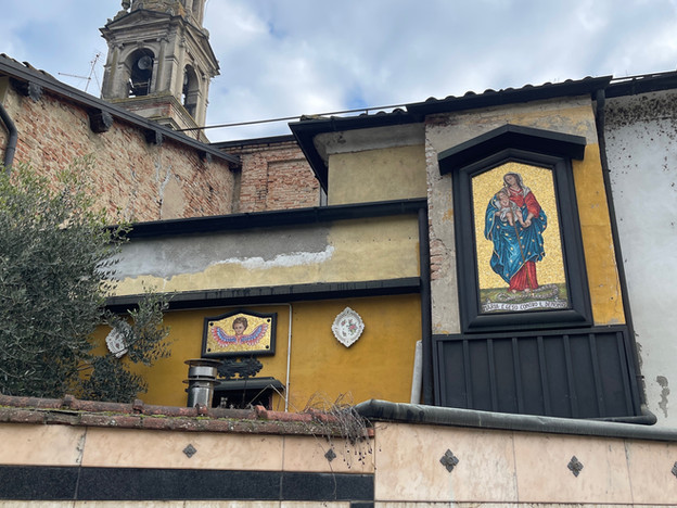 Ayant aperçu quelques photos léchées de Pizzighettone sur un réseau social, j’ai voulu contempler de mes yeux cet incroyable édifice en mosaïques. À peine plus loin, semble-t-il, un mur d’enceinte, des ruelles voûtées, un pont et des reflets sur la rivière. Or, par une journée morne de décembre, la découverte va s’avérer plus sinistre que prévu.